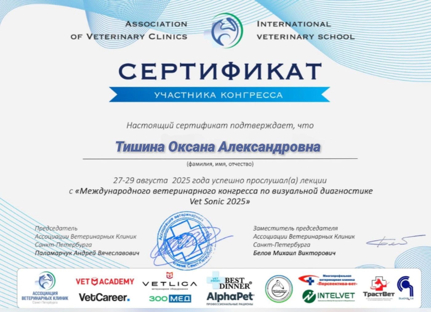 Ветеринарный врач Специализация: терапия, кардиология, хирургия, СХЖ